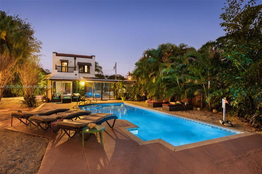 Discover the allure of this 1920s mission-style gem in Biscayne Park. This unique property boasts a 3BR/2BA main house and a 1BR/1BA guest cottage, all fully furnished. Inside the main residence you will find beamed ceilings, an enclosed porch, and sweeping hardwood floors that capture the essence of its era, while the high-end kitchen caters to culinary enthusiasts. Outdoors, a spacious lanai, pool, spa, gazebo, and a cozy fire pit set the stage for unforgettable gatherings. Encased in a beautifully landscaped yard on a sprawling 21,375 square foot lot, this home offers a tranquil retreat, providing ample space for relaxation and outdoor activities. An excellent investment, it offers potential as a rental or Airbnb. Step into a blend of charm and modern conveniences for lasting memories