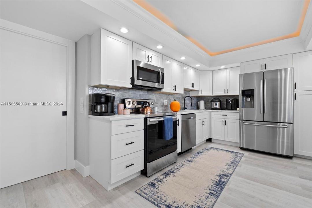 This exquisite condominium features three spacious bedrooms, two and a half elegantly appointed bathrooms, and showcases captivating water views. The open-concept layout seamlessly connects the living, dining, and kitchen areas, creating a sophisticated space perfect for modern living. Expansive impact windows allow natural light to flood the interior, while providing enhanced safety and energy efficiency. The master suite includes a large walk-in closet, offering ample storage. Stylish vinyl flooring throughout adds both durability and charm. Every detail reflects refined craftsmanship and contemporary elegance, ideal for upscale living.
