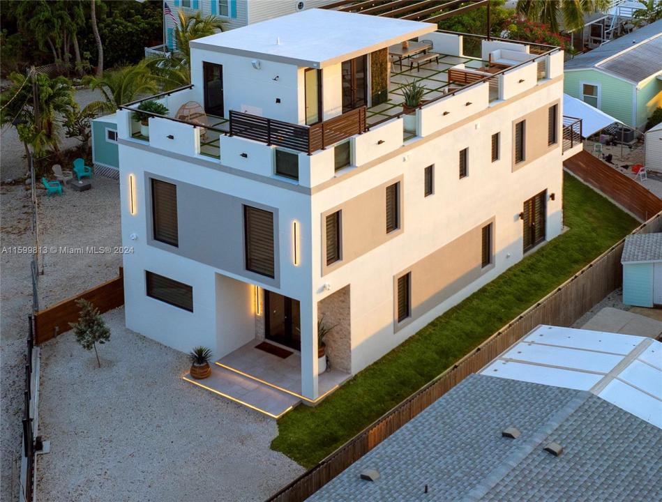 A brand-new architectural masterpiece nestled at mile marker 106 in Key Largo, FL. This stunning smart home, built in 2024, boasts 2,798 square feet of top-of-the-line living space on a 4,336 square foot lot, offering the ultimate in luxury and comfort. Experience breathtaking sunset views from the rooftop deck, complete with a built-in bar, double beer taps, a hot tub, a half bath, and storage! Every detail has been meticulously designed for both functionality and style. The fully equipped Smart Home System lets you control your environment with ease